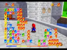 Debugging display in Super Mario 64. This display prints both current memory and CPU usage as well as information about the game's state.