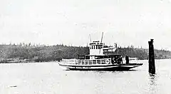 A ferry across Deception Pass was first proposed by Island and Skagit county commissioners in 1912, and was definitely in operation by 1914.[1][2][3] From 1924 to 1935, the route was run by Berte H. Olson (1882-1959), and her husband, O.A. Olson, who held a state highway contract. Berte Olson was the first woman to hold a ferry captain's license in Washington state.[4]