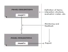 The Delphi method or Delphi technique (/ˈdɛlfaɪ/ DEL-fy; also known as Estimate-Talk-Estimate or ETE) is a structured communication technique or method, originally developed as a systematic, interactive forecasting method which relies on a panel of experts.[1][2][3][4][5] The technique can also be adapted for use in face-to-face meetings, and is then called mini-Delphi. Delphi has been widely used for business forecasting and has certain advantages over another structured forecasting approach, prediction markets.[6]