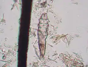 Demodex is a genus of mite in the family Demodecidae. The mites are specific to their hosts, and each mammal species is host to one or two unique species of Demodex mites. Therefore, demodicosis cannot be transferred across species and has no zoonotic potential.[2]