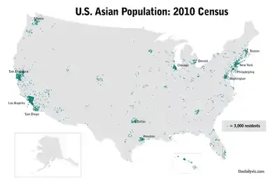 {{cite web}}:|last=has generic name (help) - "Total Population: Asian Alone or in combination with one or more other races". 2010 Census Summary File 2. United States Census Bureau. Archived from the original on 14 February 2020. Retrieved 4 May 2019.