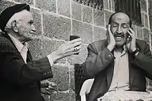 Dengbêj is a Kurdish music genre and/or a singer of the music genre Dengbêj. Dengbêjs are singing storytellers. There have been many terms to describe Dengbêjs throughout history, but today Dengbêj is the best known, and also several singing storytellers use Dengbêj as part of their own (artistic) name.[1] Dengbêjs are viewed as a way to transmit the traditions of their Kurdish ancestors in times as it was not possible to publish in Kurdish or about Kurdish history.[2] Since there don't exist many documents about certain Kurdish events, today there exist attempts to analyze them through the songs of the Dengbêjs.[3] They sing about Kurdish geography,[4] history, recent events, but also lullabies and love songs.[5]