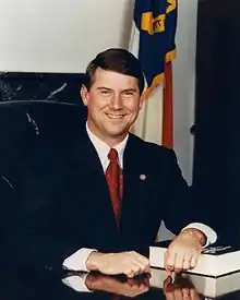 Dennis Alvin Wicker (born June 14, 1952) is an American lawyer and politician from Sanford who served as a member of the North Carolina House of Representatives (1981–1993) and as the 31st Lieutenant Governor of North Carolina (1993–2001). As lieutenant governor, he became the first statewide elected official to chair the State Board of Community Colleges, which sets policy for the state's 58-campus system. Wicker was also a member of the North Carolina State Board of Education and the State Board of Economic Development.[1]
