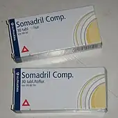 Carbamates are a class of depressants or "tranquilizers" that are synthesized from urea.[6] Carbamates have anxiolytic,[7] muscle relaxant,[7] anticonvulsant,[8] hypnotic,[7] antihypertensive,[9] and analgesic effects. It has other uses like muscle tremors, agitation, and alcohol withdrawal. Its muscle relaxant effects are useful for strains, sprains, and muscle injuries together with rest, physical therapy, and other measures.[7] The effects, synthesis and mechanism of action of Carbamates are very similar to barbiturates.[10] There are many different types of Carbamates, some only produce anxiolytic effects and hypnotic effects while some only have anticonvulsant effects.