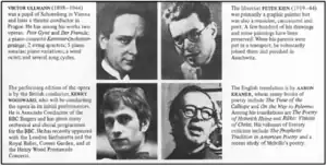 About 1943, Ullmann and Kien were inmates at the Nazi concentration camp of Theresienstadt (Terezín) when they collaborated on the opera.[3] It was rehearsed at Theresienstadt in March 1944, but the Nazi authorities interpreted the work's depiction of the character of the Kaiser as a satire on Adolf Hitler and did not allow it to be performed.[4] Both the composer and the librettist were murdered in the Auschwitz concentration camp.[5] Prior to his death, Ullmann had expressed that his time in Theresienstadt did not damper his creative drive.[6] This sentiment is confirmed by Ullmann himself:[7]