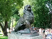 Next to the street is Odesa's first park, which was built shortly after the foundation of the city in 1803 by the De Ribas brothers, Joseph and Felix (Josep and Fèlix). This park has a fountain, bandstand, and several monuments, including a sculpture of a lion and lioness with her cubs, a chair commemorating the famous book "The Twelve Chairs", two monuments to Leonid Utyosov (a sculpture and also a phone which plays his music), and a monument to Sergey Utochkin, a famous pilot.[2]