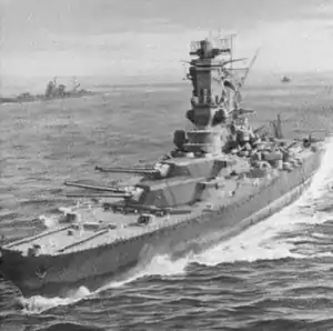 Formal design studies began in 1938–1939. They initially focused on a ship closer to the displacement of the preceding Yamato class, on which plans had just been completed, albeit one mounting six 51-centimeter guns.[7] As the Japanese expected that the Americans would ascertain the true characteristics of the Yamato class—especially its primary armament of 46-centimeter (18.1 in) guns, which would become the largest naval weapons in use in the world—they hoped that the 51-centimeter guns would outperform any American response to the Yamato's smaller guns.[1]