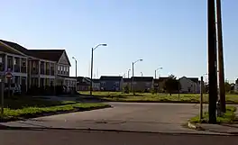 Desire Projects was a housing project located in the Ninth Ward of New Orleans, Louisiana. These projects were the largest in the nation and consisted of about 262 two-story brick buildings, containing about 1,860 units across 98.5 acres of land.[1] The overall conditions of the projects were deplorable from the moment they were put into place in the later part of the 1950s. The projects were meant to serve the large number of underprivileged African American residents in the New Orleans area. Soon it became a place of despair, and Desire eventually evolved into a dark no-man's land, leaving many residents infested with problems and little or no help from the government. Located in a cypress swamp and dumping ground,[2] Desire was known as the poorest housing development in New Orleans—it was bordered by railroad tracks, the Mississippi River, the Industrial Canal and a corridor of industrial plants.[2]