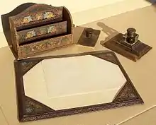 A desk pad or blotter is a table protector used when work such as painting or writing would otherwise damage the table or desk.