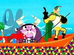 "Destination: Imagination" was originally broadcast on Thanksgiving Day, November 27, 2008, on Cartoon Network, at 8:00 P.M. EST.[1][4] It followed an afternoon-long marathon of the animated series Chowder and a My Gym Partner's a Monkey Thanksgiving special entitled "A Thanksgiving Carol".[1] The first special for the series, entitled "Good Wilt Hunting," had also aired on Thanksgiving, back in 2006.[5] At the 61st Primetime Emmy Awards, the special won the award for "Outstanding Animated Program (More Than One Hour)", winning over Spike TV's Afro Samurai: Resurrection.[3][6][7][8] It was nominated for two Annie Awards for Best Animated Television Production Produced for Children and Directing for an Animated Television Production or Short Form. The special lost both to Nickelodeon's Avatar: The Last Airbender.[9][10]