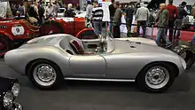 The most commonly attributed source for the Devin body's shape is that it was developed from a mold taken of an Ermini 357 Sport 1100 with aluminium bodywork by Scaglietti.[8] The car was serial number 1255, and was owned by James Orr, who was a friend of Bill Devin's and who had raced the second Devin-Panhard ever produced.[9][10] The Ermini's body closely resembled the design that Scaglietti had done for the larger Ferrari 750 Monza, and some of Devin's own early ad copy refers to these bodies as Devin Monzas. This body was advertised widely at a price of US$295.00, and so at times is also called the '295' body.