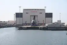 Constructed between 1982 and 1986 by Alfred McAlpine plc[1] for Vickers Shipbuilding and Engineering, DDH was built on land that was created by infilling part of Devonshire Dock with 2.4 million tonnes of sand pumped from nearby Roosecote Sands. The purpose of the indoor shipbuilding facility was to protect vessels from external weather conditions and prevent satellites from photographing secret technologies involved. DDH provides a controlled environment for ship and submarine assembly, and avoids the difficulties caused by building on the slope of traditional slipways. Outside the hall, a 24,300-tonne capacity shiplift allows completed vessels to be lowered into the water independently of the tide. Vessels can also be lifted out of the water and transferred to the hall.[2] The shiplift was the largest in the world upon completion.[3] The first use of the DDH was for construction of HMS Triumph (S93), followed by the Vanguard-class submarines nuclear-powered ballistic missile submarines (SSBNs) (Vanguard, Victorious, Vigilant and Vengeance). The shipyard is currently constructing the Astute-class submarines the first of which HMS Astute was launched in 2007.[4]
