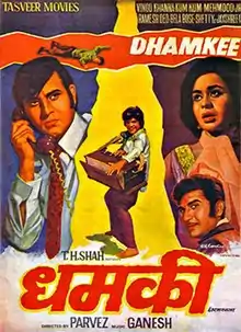 Dhamkee is a 1973 Bollywood drama film directed by Kalpataru. The film stars Vinod Khanna & Kumkum in lead roles.