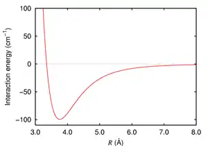 The dissociation energy of neutral Ar2 in the ground state is 98.7 cm−1[3] which is hundreds of times weaker than that of typical molecules.[1] The dissociation energy of Ar2+ is 1.3144 eV or 10601 cm−1.[4]