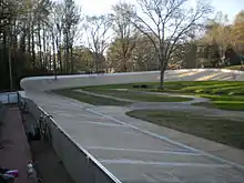 Dick Lane Velodrome, constructed in 1974, is a bicycle racing facility inspired by a group of residents and City officials that visited the Munich Olympics. Located eight miles south of downtown Atlanta, the Velodrome is 321.8 metres (1,056 ft) and 36° banked concrete track, set in Sumner park in a residential part of East Point. The City of East Point owns the facility and has a long-term partnership with East Point Velodrome Association, Inc. (EPVA) to manage it. It is one of 22 active velodromes in the United States.[1]