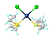 A typical coordination complex is cis-PtCl2(SEt2)2.