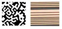 The theory of operation is based on the wave nature of light and Huygens' Principle (See also Diffraction). Designing the diffractive pattern for a beam splitter follows the same principle as a diffraction grating, with a repetitive pattern etched on the surface of a substrate. The depth of the etching pattern is roughly on the order of the wavelength of light in the application, with an adjustment factor related to the substrate's index of refraction. The etching pattern is composed of "periods" – identical sub-pattern units that repeat cyclically. The width d of the period is related to the separation angle θ between output beams according to the grating equation: