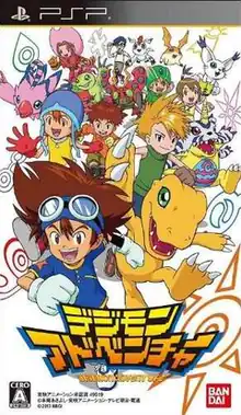 Digimon Adventure (デジモンアドベンチャー, Dejimon Adobenchā) is a 2013 role-playing video game developed by Prope and published by Bandai Namco Games under the Bandai label for the PlayStation Portable. The story of the game is based on the first Digimon anime series of the same name. It includes dialogue with voice acting from the main voice acting team of the anime. The opening theme song for the anime, Butter-Fly by Kōji Wada, and the insert song used for digivolutions, Brave Heart by Ayumi Miyazaki, are also featured. The game is part of the series' 15th anniversary celebration and was released in Japan on January 13, 2013.