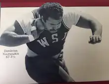 Dimitrios Koutsoukis (Greek: Δημήτριος Κουτσούκης; born 8 December 1962)[1] is a retired Greek shot putter who won a gold medal in the 1987 Mediterranean Games in Shot Put and represented Greece in 1984 Summer Olympic Games.
