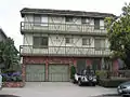 While the word is sometimes said to reference dingbat in the sense of a "general term of disparagement",[6] dingbat refers to the stylistic star-shaped decorations, reminiscent of typographic dingbats, that often garnish the stucco façades.[7][8][9] These flourishes and other ornamental elements reflect the contemporary but more complex Googie architecture.