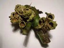 Diplolepis rosae is a gall wasp which causes a gall known as the rose bedeguar gall, Robin's pincushion, mossy rose gall, or simply moss gall.[1][2] The gall develops as a chemically induced distortion of an unopened leaf axillary or terminal bud, mostly on field rose (Rosa arvensis) or dog rose (Rosa canina) shrubs. The female wasp lays up to 60 eggs within each leaf bud using her ovipositor. The grubs develop within the gall, and the wasps emerge in spring; the wasp is parthenogenetic with fewer than one percent being males.