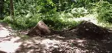 Dirt jumping is the practice of riding bikes over jumps made of dirt or soil and becoming airborne. Dirt Jumping evolved alongside BMX racing and is similar to BMX or mountain bike racing in that the rider jumps off of mounds of dirt, usually performing a midair trick in between.[1] It differs in that the jumps are usually much larger and designed to lift the rider higher into the air. Additionally, the goal is not to complete the course with the fastest time, but rather to perform the tricks with the style. Dirt jumping can be performed on BMX bikes or specialized mountain bikes known simply as "dirt jumpers".