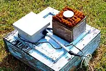 A disdrometer is an instrument used to measure the drop size distribution and velocity of falling hydrometeors. Some disdrometers can distinguish between rain, graupel, and hail.[1]