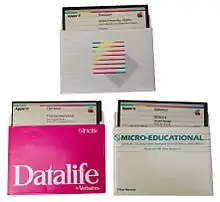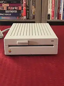The Disk IIc (A2M4050) was a half-height 5+1⁄4-inch floppy disk drive introduced by Apple Computer in 1984 styled for use alongside the Apple IIc personal computer, the only Apple II to contain a 5+1⁄4-inch built-in disk drive mechanism. The disk port on the original IIc was only designed to control one additional, external 5+1⁄4-inch disk drive, and as such, this particular drive omitted a daisy-chain port in back. It was possible to use it on other Apple II models, so long as it came last in the chain of drive devices (due to lacking a daisy-chain port); but since the Disk IIc was sold without a controller card, the Apple IIc computer needing none, it had to be adapted to an existing Disk II controller card in this case. Essentially the same as the full-height Disk II, Apple sold the Disk IIc for US$329, and other companies later sold similar drives for less.[11]