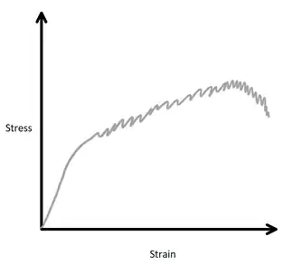 Solute-drag creep is characterized by serrated flow [2] and is typically observed in metallic alloys that do not exhibit short-time creep behavior – the creep rate of these material increases during transient creep before reaching steady-state.[2]