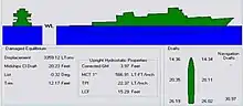 The process of determining a vessel's displacement begins with measuring its draft.[3] This is accomplished by means of its "draft marks" (or "load lines"). A merchant vessel has three matching sets: one mark each on the port and starboard sides forward, midships, and astern.[3] These marks allow a ship's displacement to be determined to an accuracy of 0.5%.[3]