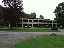 The Hutchinson Building was built in 1954 and was named after the hospital's late superintendent. Construction started in 1949, but was brought to a halt when the entire foundation slid down the hill, creating a landslide much like the one that occurred in 2006. The construction site was moved to a different location and the building's design had to be altered to prevent further sliding.[8] This building contained the intensive care unit, x-ray facilities, a small cafeteria, barber shop, isolation units, physical therapy areas, and observation rooms, and instrument sterilization equipment. Each floor had patient rooms on the ends of the building surrounding a nurses pod, all separated by half-glass walls so the nurses could easily observe all of the patients. Also in this building were the morgue, laboratory, and autopsy unit. Prior to the demolition of Dixmont, the building was assessed to decide whether it could be reused like the Cammarata Building. However, poor drainage had completely flooded the basement and renovation costs were figured to be greater than the value of the building itself, so it was demolished.