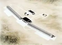 A Dnestr radar was composed of two TsSO-P radar wings joined together by a two-story building containing a joint computer system and command post. Each radar wing covered a 30-degree sector with a 0.5 degree scanning beam. The elevation scanning pattern was a 'spade' with a width of 20 degrees. The radar systems were arranged to create a fan shaped barrier. Of the four radars, called cells (Russian: РЛЯ, tr. RLYa roughly radio location cell), two faced to the west and two faced to the east. All scanned between +10 degrees and +90 degrees in elevation.[8]