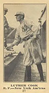 Luther Almus "Doc" Cook (June 24, 1886 – June 30, 1973) was a Major League Baseball outfielder. Cook played for the New York Yankees from 1913 to 1916. In 288 career games, he had a .274 batting average with three home runs and 75 RBI.