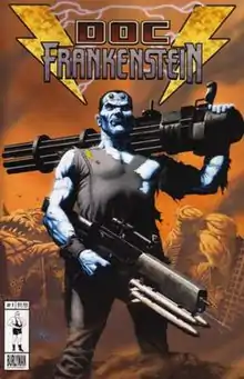 Doc Frankenstein is an American comic book series created by Geof Darrow and Steve Skroce, written by the Wachowskis (Lilly and Lana, better known for their work on The Matrix series), drawn by Skroce, and published by Burlyman Entertainment.[1] The first issue was published in November 2004 and after six issues, the last of which was released in December 2007, the comic entered a long hiatus. An oversized deluxe hardcover trade paperback was released in November 2019, that completed the story.