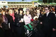 The Docado Syndicate is a six person[1] horse racing ownership group from Ireland. The syndicate includes Eamon Doyle and Kitty Carr, owners of the Park House Hotel in Galway City for the past 34 years.[2][3] Doyle and Carr are also the owners of the Galway Restaurant, also located in Galway City.[4] Along with Doyle and Carr, the Docado Syndicate ownership group also includes Carr’s sister Maura, her husband Sylvie Dowd and their children Tom and Ann Marie.[1] The Syndicate’s name, Docado, is formed by using the first two letters of the principal owners’ last names: DOwd, CArr, DOwd.