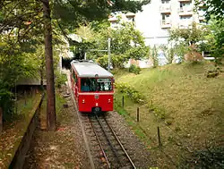 The Dolderbahn (Db or DBZ) is a 1.3 km (0.81 mi) long rack railway in the Swiss city of Zürich. The line is in Zürich's Hottingen and Fluntern suburbs on the south slope of the Adlisberg mountain. The lower terminus of the line is at Römerhof, some 1.5 km (0.93 mi) from the city centre, where it connects with lines 3 and 8 of the Zürich tramway. The upper terminus at Bergstation Dolderbahn is adjacent to the Dolder Grand Hotel and the Dolder recreation area. Two intermediate stations, at Titlisstrasse and Waldhaus Dolder, are also served.[1][2][3]