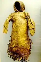 The earliest dolls were made from available materials such as clay, stone, wood, bone, ivory, leather, or wax. Archaeological evidence places dolls as the foremost candidate for the oldest known toy. Wooden paddle dolls have been found in Egyptian tombs dating to as early as the 21st century BC.[1] Dolls with movable limbs and removable clothing date back to at least 200 BC. Archaeologists have discovered Greek dolls made of clay and articulated at the hips and shoulders.[1][2] Rag dolls and stuffed animals were probably also popular, but no known examples of these have survived to the present day.[2] Stories from ancient Greece around 100 AD show that dolls were used by little girls as playthings.[1] In ancient Rome, dolls were made of clay, wood or ivory. Dolls have been found in the graves of Roman children. Like children today, the younger members of Roman civilization would have dressed their dolls according to the latest fashions. In Greece and Rome, it was customary for boys to dedicate their toys to the gods when they reached puberty and for girls to dedicate their toys to the goddesses when they married.[1][2] Rag dolls are traditionally home-made from spare scraps of cloth material. Roman rag dolls have been found dating back to 300 BC.[3]