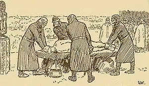 ![]() Midvinterblot (1915) by Carl Larsson, which depicts the offering of king Domalde | |