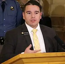 Dominick Moreno is an American politician, currently serving as a state legislator in Colorado. A Democrat, Moreno was elected to the 21st district of the Colorado Senate in 2016.[1] He previously represented the 32nd district in the Colorado House of Representatives from 2012 to 2016.[2]
