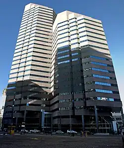 Dominion Towers is an office complex in Denver, Colorado. It consists of two adjoining towers, and was built in 1982. The taller one, Dominion Towers South, is 384 feet (117 m) tall and has 28 floors. The buildings have pink granite facades and blue-tinted windows.