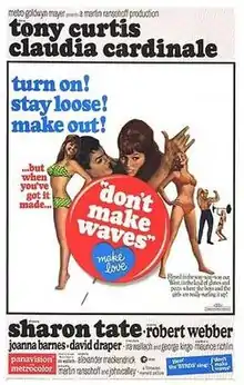 Don't Make Waves is a 1967 American sex comedy (with elements of the beach party genre) starring Tony Curtis, Claudia Cardinale, Dave Draper and Sharon Tate. Distributed by Metro-Goldwyn-Mayer, the film was directed by Alexander Mackendrick and is based on the 1959 novel Muscle Beach, by Ira Wallach, who also co-wrote the screenplay.