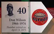 ![]() Plate honoring Don Wilson on the Houston Astros Wall of Honor at Minute Maid Park |