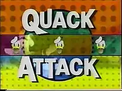 A similar Mickey Mouse version was called Mickey's Mouse Tracks, however, unlike Mouse Tracks, Quack Attack was run with a manic energy. In between the cartoon shorts, a screen would appear with a random background color (pink, blue, green, etc.) with a clip in the corner from a random Donald Duck cartoon. There was a thermometer called the "Quack Attack Meter" with Donald's head on the bottom. When the clip showed Donald getting angry, injured, or humiliated, the head on the thermometer would go up and make a dinging sound.[3] This 10-25 second clip would appear 2 to 4 times per show, depending on how long the shorts were. The credits for the show did not name anyone. Instead, it stated, "The cartoons in this program are the work of animators from THE WALT DISNEY COMPANY over the past 60 years."