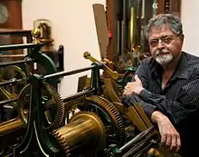 In recent years, Saff has continued to lecture and write on art and the history and mechanics of nineteenth-century clocks; in particular, the work of Charles Fasoldt, in addition to the development of time distribution from the Harvard College Observatory, and the horological innovations of Richard F. Bond.[5] He has lectured on Fasoldt for the Antiquarian Horological Association in Cincinnati, OH (2001), the National Association of Watch and Clock Collectors in Pittsburgh, PA, and Anheim, CA (2003), and at the 26th Annual Ward Francillon Time Symposium in Houston, TX (2004), among other venues.[1] Saff continues to work with the Royal Observatory in Greenwich, collaborating with Jonathan Betts and Rory McEvoy, on the trials of Burgess Clock B. (See "Honors.")