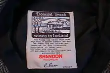 Based in Kilcar, Co Donegal, Studio Donegal was founded in 1979 to preserve the tradition of hand weaving. Originally established by the now defunct Connemara Fabrics under the leadership of Kevin Donaghy. Kevin and his wife Wendy bought the operation from Connemara Fabrics, and it continues today under the management of their son, Tristan Donaghy. Remaining true to its original objective, all the tweed produced in Studio Donegal is genuinely hand woven.[8] Eddie Doherty continues to hand weave in his shop/weaving room in Ardara Co Donegal.[9]