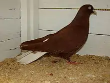 The Donek is a Turkish breed of fancy pigeon developed over many years of selective breeding. The name Donek is of Turkish language origin and means, "turning and dropping down from the sky."[1] The Donek, along with other varieties of domesticated pigeons, are all descendants from the rock pigeon (Columba livia).[2] The breed is known for its aerial acrobatics (spiral diving) and as such is more of a performance breed rather than a purely fancy variety. Their aerial spiraling return when called back to the loft makes a spectacular sight.[3]