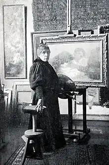 After 1880, she lived in Paris, where she studied with Luc-Olivier Merson, Gustave Courtois, Jean-Joseph Benjamin-Constant and Eugène Carrière, who had the most influence on her style. She spent 1886/87 in Romania, then returned to Paris, becoming friends with Eugen Jettel and Hermann Bahr.[1] She travelled throughout Brittany and Normandy and, in 1890, became a member of the Salon of the Société des Artistes Français. From 1892, she was a regular participant in the exhibitions of the Société Nationale des Beaux Arts.