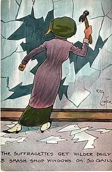 Following her arrest in March 1912 for taking part in a window smashing campaign she appeared at Bow Street Magistrates' Court on 12 March 1912, before being sent for trial at the London Sessions on 19 March 1912, when she was sentenced to four months imprisonment in Holloway Prison;[4] in prison she went on hunger strike and was force-fed.