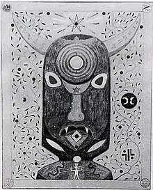 Developing an interest in occultism, she began practising ceremonial magic with a friend, "Zerki", at his flat.[21] She had obtained the magical regalia and notebooks of a recently deceased doctor, who had been a member of the Alpha et Omega, a splinter group of the Hermetic Order of the Golden Dawn, and attempted to learn Hebrew, a language with uses in various forms of ceremonial magic.[22] It was at this point that she selected "Ameth" as her magical name.[23] She was particularly interested by John Symonds' book The Great Beast, which was a biography of the occultist Aleister Crowley, who had founded the religion of Thelema in 1904,[24] and following this she avidly read a copy of Crowley's Magick in Theory and Practice which she found in a local library.[25] Alongside these, she also had some practical experience with the esoteric religions of Spiritualism and Theosophy, having attended the services of a local Christian Spiritualist church in Charminster.[26]