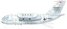 During February 1962, the formal launch of the Do 31 programme occurred with the issuing of a development contract from the West German government.[3] By the start of 1964, Dornier had started building a pair of prototype aircraft; their manufacture was largely performed at the company's Oberpfaffenhofen plant.[10][11] A total of three test prototypes were constructed, these being E1, E2 and E3 - the "E" indicating Experimentell (Experimental). E1 was powered only by the Pegasus engines, having been designed to test horizontal flight. E2 was a static test airframe, and did not ever fly. E3 was furnished with both Pegasus and RB162 lift engines installed, being intended to evaluate the design's vertical flight mode.